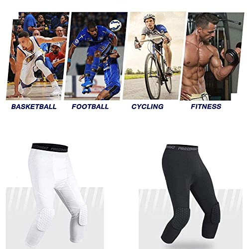 REDSHORE Pantaloni Sportivi da Basket ¾ Pantaloni a Compressione con Ginocchiere, Collant Anti-collisione Leggings Supporto Protettivo per Bambini all'aperto - Uomini Adulti (XS,White)