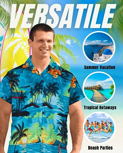 Redstar Fancy Dress - Camicia Hawaiana da Uomo - Aloha - Maniche Corte - Tutte Le Taglie - Blu - XL