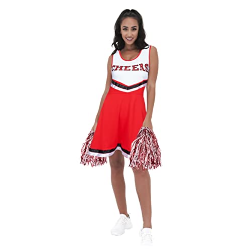 Redstar Fancy Dress - costume Halloween da donna - cheerleader con pompon - dalla EU 34 alla EU 44 - 6 colori - Rosso - S