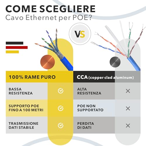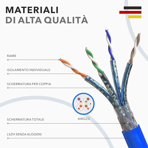 ✅ Prodotto realizzato con un primo strato di pellicola in alluminio denso al 100%, rivestito in PIMF e di un secondo strato di treccia in alluminio, soddisfa la sofisticata classe di schermatura S/FTP per garantire una protezione ottimale contro le interferenze elettromagnetiche.