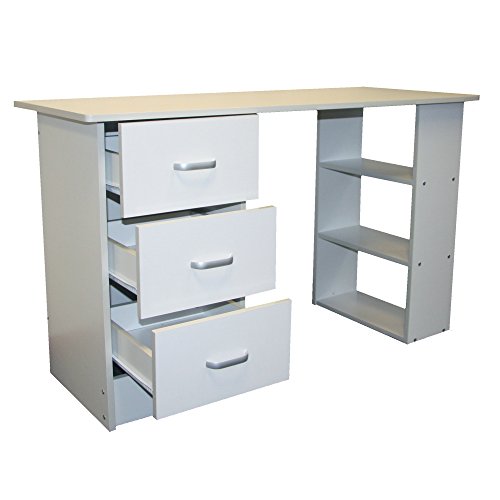 Redstone scrivania bianca - MDF/truciolato - effetto legno. Maniglia per cassetto in metallo