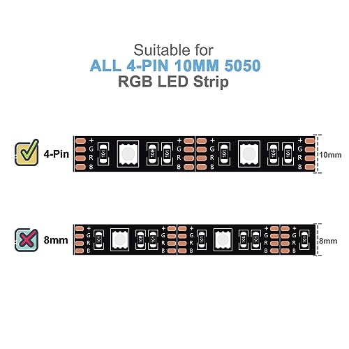 Compatibilità: 4 connettori 10 mm LED kit di connettore a striscia è disponibile per 0,39 pollici/10 mm Larghezza 3528/5050RGB Striscia LED flessibile. Le strisce luminose non impermeabili possono essere utilizzate direttamente. È possibile installare anche strisce LED impermeabili, ma è necessario spogliare il silicone sull'area di connessione.