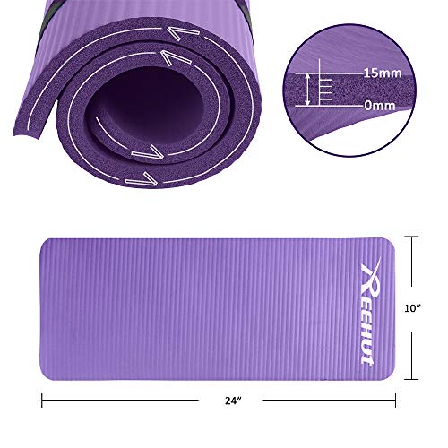 REEHUT Supporto Yoga per Ginocchia - Cuscinetto per Gomiti, Mani, Polsi - 15 mm (5/8") di Spessore - Protezione per Esercizi a Terra con cinghiette- Viola