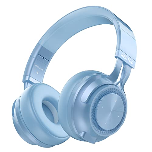 REETEC - Cuffie Bluetooth senza fili, con microfono, pieghevoli, stereo HIFI, senza fili, con cavo, per donne, ragazze, viaggi, lavoro, computer, iPhone, Android, colore: Blu