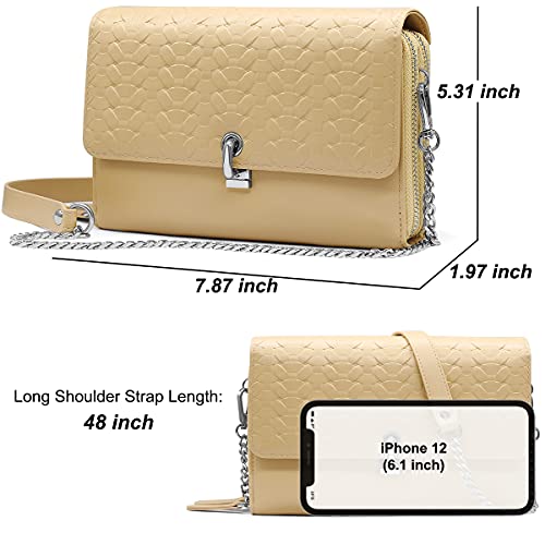 REETEE Donna Borsa a tracolla per Cellulare Portafoglio Piccola Borsa per Telefono a Tracolla per Donna in Pelle PU, Doppia Cerniera Borse a Spalla Catena con 12 Slot per Carte di Credito (Cachi) ...
