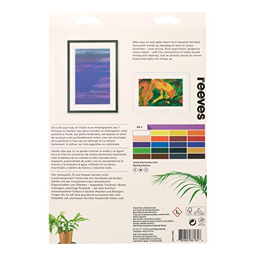 Reeves Water Mixable Oil Paint, Multicolore, 22 ml, Confezione da 20