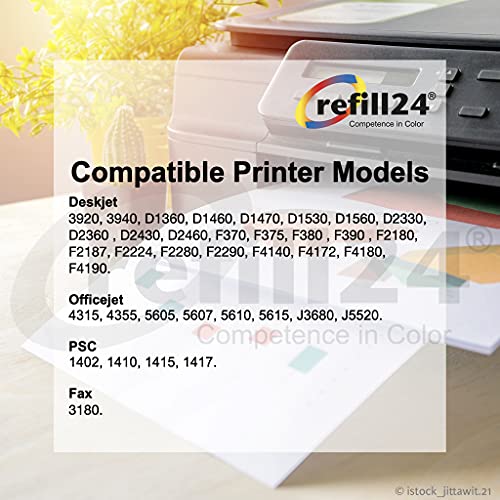 Refill24: Kit di ricarica compatibile per cartucce d'inchiostro HP 21, 22, 21 XL, 22 XL nero e a colori, include clip e accessori + 400 ml inchiostro