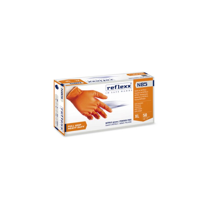 Guanti in nitrile senza polvere. Speciale grip 3D su tutto il palmo e le dita per una presa ottimale. Applicazioni automotive aziende di produzione e manutenzione. Grip con olio e grasso. Elevata resistenza meccanica. Protezione chimica. Spessore 0,15 - 0,20 mm.(DianFlex) 50 PZ GUANTI IN NITRILE FULL GRIP N85 Taglia XL - Arancio