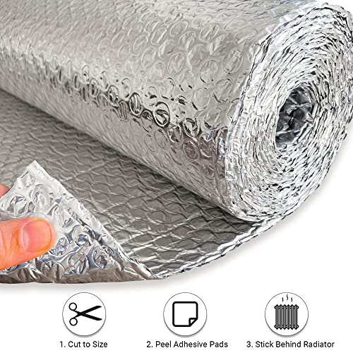 Facile da installare: i nostri pannelli riflettenti per radiatori sono adatti per radiatori di tutte le forme e dimensioni. Basta tagliare alla dimensione desiderata con le forbici, abbassare dietro il radiatore e fissarlo alla parete con i 16 cuscinetti autoadesivi forniti. Non c'è bisogno di rimuovere il radiatore e non c'è bisogno di strumenti.