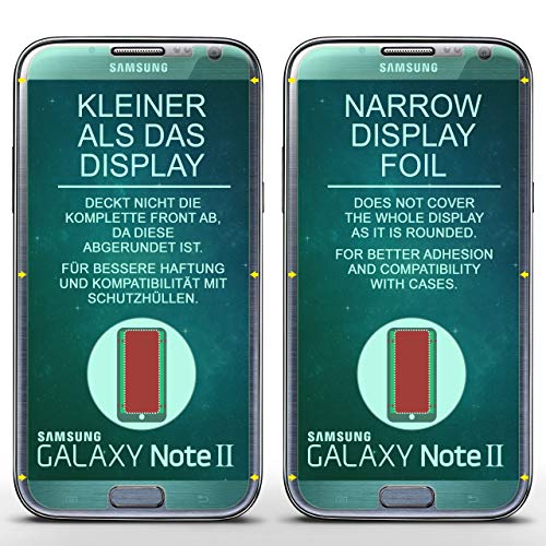 Vestibilità nota - La pellicola è consapevole piccolo tenuti, poiché il Samsung Galaxy Note 2 ha bordi arrotondati. Si prega di notare che la pellicola copre solo la a livello del display piatta. La forma della pellicola e le aperture sono state preciso adattata il Samsung Galaxy Note 2.
