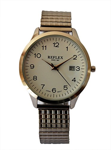 Reflex orologio da uomo con quadrante rotondo bianco data Dispay e braccialetto in argento in acciaio INOX di espansione REFX0007