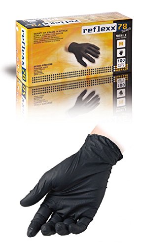 Reflexx 78 Guanti, Nitrile Senza Polvere, 100 Pezzi, Nero, Small
