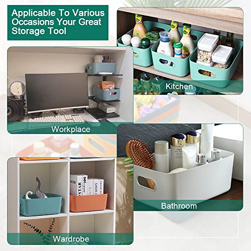 Reforung 8 Pezzi Cestini in Plastica Portaoggetti con Maniglie Cestini Portaoggetti Studio Cestini Portaoggetti per Cosmetico per Cucina, Armadio, Ufficio, Bagno, Giocattolo (4 Colori)