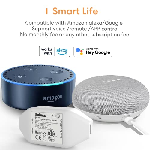 Refoss Apriporta WiFi Garage Door Opener, Apricancello Intelligente, Interruttore WiFi Smart per Porta Garage, APP Controllo Remoto, Compatibile con Amazon Alexa, Google Home, Nessun Hub Richiesto