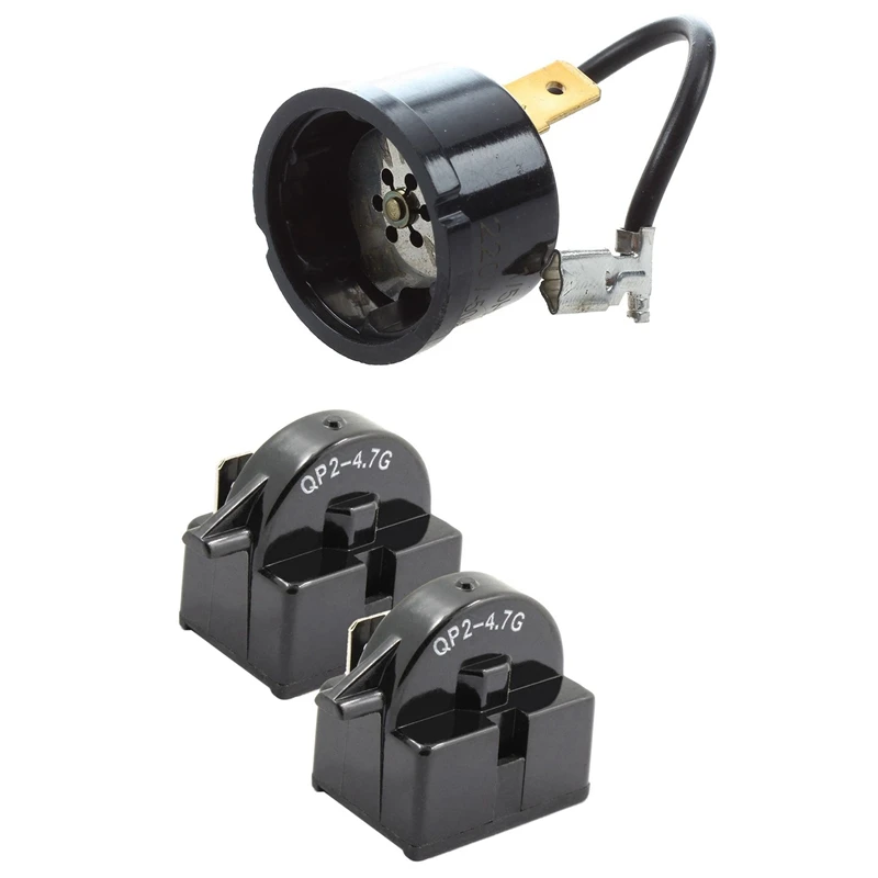 3Pcs Refrigerator Compressor Accessories: 1Pcs HX1/5HP Thermal Overload Protector & 2Pcs QP2-4.7 Start Relay Refrigerator PTC Oh