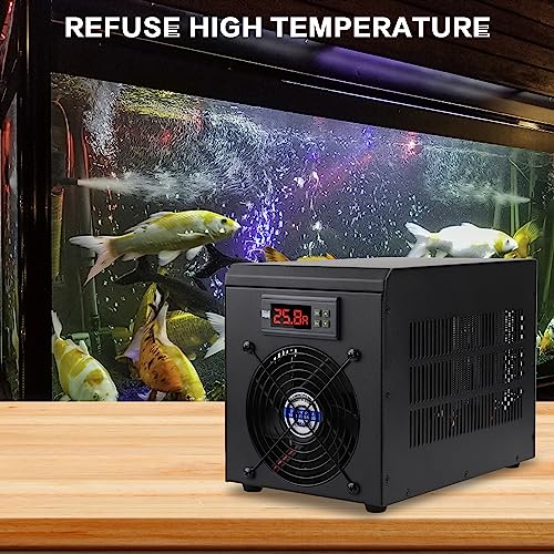 【Facile da usare】 Ventola incorporata per una rapida dissipazione del calore. Buona ventilazione e dissipazione del calore. L'impostazione della temperatura è completata con un tasto, semplice e conveniente. Il refrigeratore dell'acquario visualizza ℃/℉ per comodità.