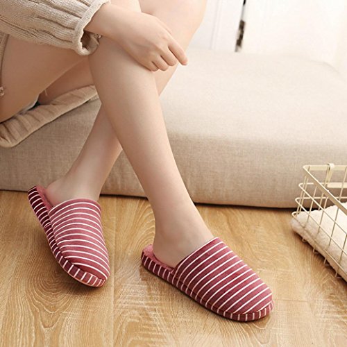 Refulgence Donne Uomini Scarpe calde morbide invernali Pantofole a righe (Rosso, 39-40)
