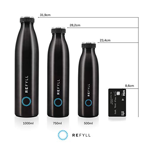 REFYLL Bottiglia d'acqua in acciaio inossidabile "dailyFYLL" - 500 ml, 750 ml, 1 l - Termosigillante con isolamento sottovuoto a doppia parete - Bottiglia isolante per sport, scuola (nero, 500 ml)