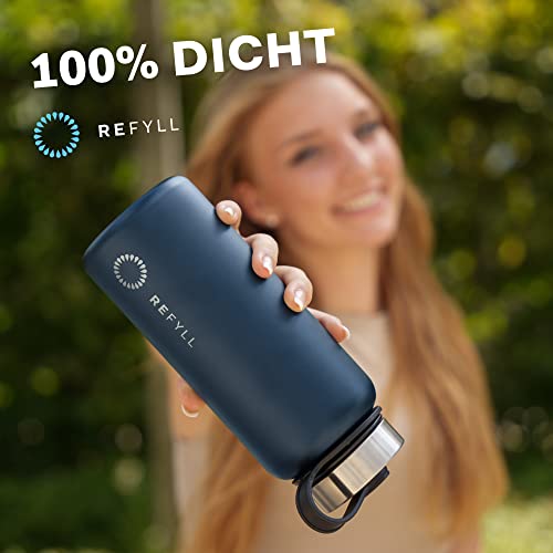 REFYLL "easyFYLL" Bottiglia d'acqua in acciaio inossidabile da 1000 ml - Termosifone premium per escursioni, fitness, bicicletta, scuola e ufficio - Bottiglia d'acqua in acciaio inossidabile