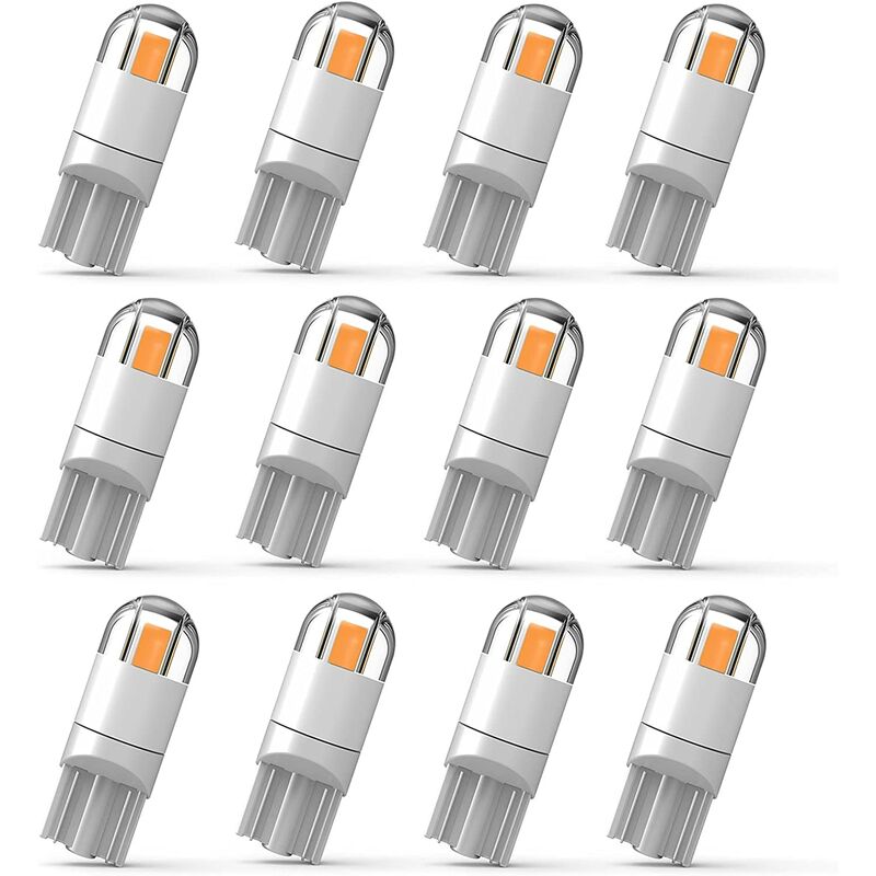 Applicazione - 12 lampadine a led 194, queste lampadine a led possono adattarsi a molte posizioni: luce targa, luce di cortesia, luce di lettura, luce di cupola, luce della mappa, luci di marcia diurna, luce di ingombro, luce di posizione, luce d'angolo, laterale luce di posizione, fanale posteriore. 【Compatibilità con azioni】 Dimensioni della lampadina compatibili: W5W 147 152 158 159 161 168 184 192 193 194 2821 2825 ecc. (Sostituzione diretta per tutti i tipi con cuneo T10.) Plug and play per una facile installazione. 【Best Beam Pattern】 Il chipset 3030 è molto luminoso con alta qualità. Ogni lampadina a led T10 194 contiene 2 chip 3030 ad alta luminosità, nessuna radiazione UV o IR. 【Alta qualità】 Potenza: 1,5 W/Lampadina;