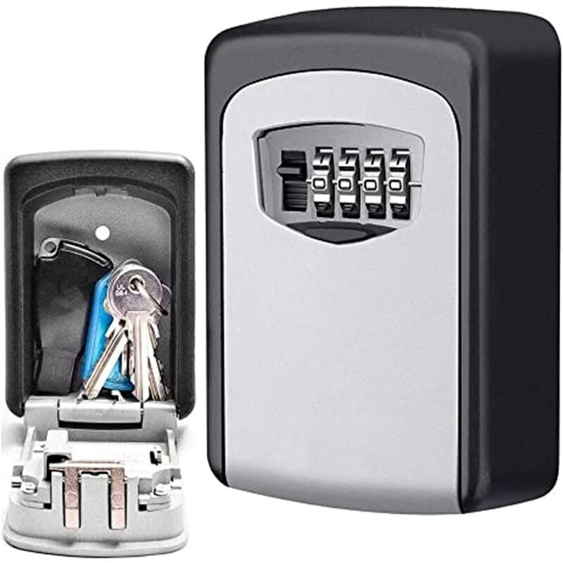 Elevata sicurezza e durata - : La custodia per chiavi esterna è realizzata in lega di alluminio ad alta resistenza e antiruggine, che lo rende abbastanza forte da resistere alla ruggine e alla corrosione. Inoltre, può resistere ai colpi di martelli, seghe e indiscrezioni. Il portachiavi ha una copertura scorrevole in gomma che protegge il pulsante combinato dalle intemperie. Il portachiavi ha una copertura scorrevole in gomma che protegge il pulsante combinato dalle intemperie, è impermeabile, resistente alla neve e alla polvere e ha una lunga durata. < p>[Scatola combinata capacità ideale]: L'armadio portachiavi montato a parete è stato aggiornato per essere uno spazio di archiviazione sicuro (dimensioni interne circa 3,7 x 2,6 x 1,4 (L*P*A)) per un massimo di 5 chiavi o 3 chiavi grandi, o per riporre chiavi di auto piccole, carte di credito, carte d'identità e altri piccoli oggetti. [combinazione gratuita a 4 cifre]: La cassetta delle chiavi a combinazione è un lucchetto a