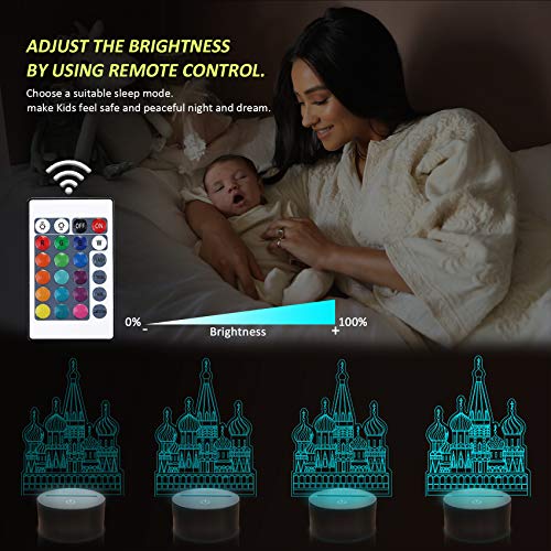 Regali Castello, Lampada 3D CooPark LED Ologramma Ottico Luce Notturna, 16 Cambia Colore con Telecomando, Decorazione Camera Bambini Compleanno Creativo Natale Presente per Ragazze Ragazzi