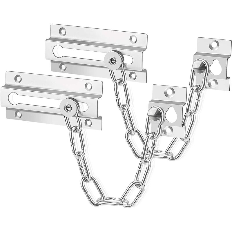 Sicurezza e privacy extra] Le serrature con catena per porte offrono sicurezza e privacy extra per la tua casa. Le serrature a catena possono essere utilizzate per impedire ad altri di entrare nella tua stanza. I lucchetti a catena possono essere utilizzati per impedire a bambini o animali domestici di aprire porte o armadietti da soli. 【Ampiamente usato】 Il lucchetto a catena è uno stile classico comune. Le serrature per porte a catena possono essere utilizzate in molti luoghi, come porte di appartamenti, porte di hotel, porte di uffici, porte di camere da letto, porte di ripostigli, porte di scantinati, porte di garage, porte di armadi, finestre, ecc. Installazione semplice 】 Vengono fornite le viti per installare la catena della serratura. L'installazione del lucchetto a catena della porta può essere eseguita da solo in pochi minuti. [Cosa ottieni] 2 confezioni di lucchetti a catena e 12 viti.