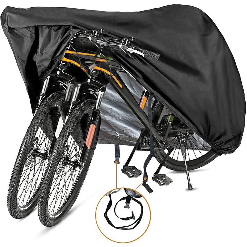 Grande - 190T-XL per 1 o 2 bici: 79 L x 29,5 L x 43 H, copre facilmente 1 o 2 bici fino a 29 di dimensione della ruota, fornendo una protezione completa per la tua bici, Proteggi la tua bici da polvere, sporco, sole, pioggia, raggi UV e sostanze inquinanti (se hai due bici più grandi, ti consigliamo la 190T-XXL per 3 bici) Caratteristiche del design - La testa e la coda del copribicicletta hanno l'orlo elastico per una facile installazione e utilizzo, la parte centrale del la copertura ha una corda antivento con un lucchetto, che può impedire efficacemente che la copertura si soffi via con vento forte, e la copertura ha anche un foro di blocco antifurto, che è conveniente Migliora la protezione dal vento della copertura dell'auto mentre chiudi l'auto