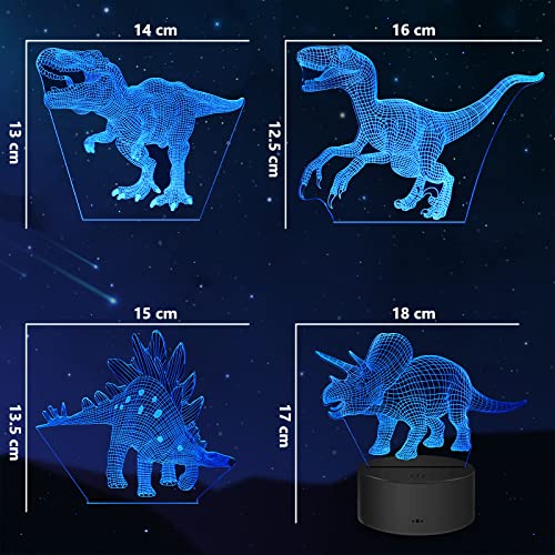Regali di Dinosauro, 4 Pezzi di Luce Notturna con Lampada a Dinosauro 3D con 16 Cambi di Colore e Telecomando, Regali per Bambini da 3 4 5 6+ anni (4 pcs)