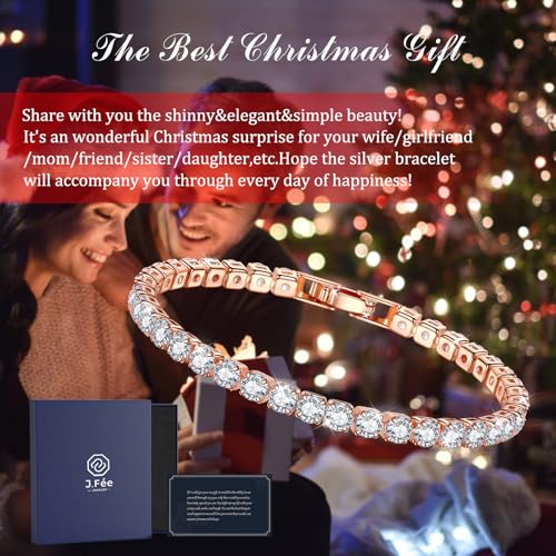 J.Fée Regali Donna Bracciale Donna, Bracciale Tennis Donna in Oro Rosa 925 Idee Regalo Donna per Mamma Amici Bracciali Oro Rosa 925 Regalo Festa della Mamma Bracciale con Sparkle Zircone, 17cm