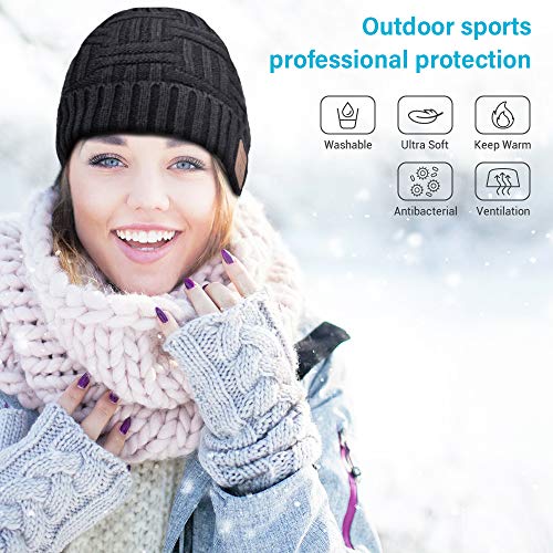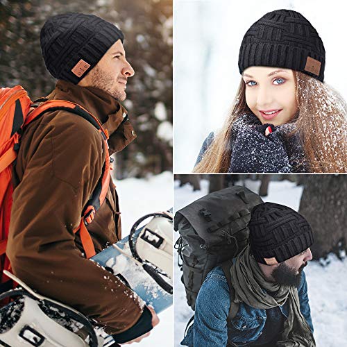 Regali per Donna e Uomo Cappello Bluetooth - Bluetooth 5.0 Cappello Bluetooth Donna e Uomo, Musicale Cappello Bluetooth Invernale, Regali Natale Uomo e Donna, Cappello per Sci, Nero, Taglia Unica