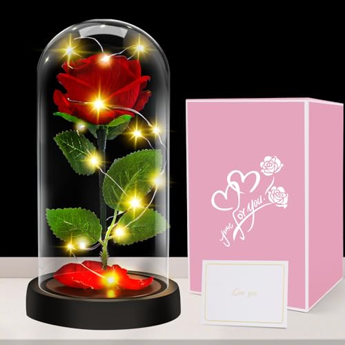 Regalo di compleanno con rose per lei - La rosa conservata nella cupola di vetro verrà fornita con una bellissima confezione regalo e un biglietto di auguri, in modo da poterla regalare direttamente senza perdere tempo sulla confezione. Grande regalo romantico di fiori di rosa Regalo di San Valentino, regalo per la festa della mamma, regalo di compleanno e regalo di nozze per amanti e amici.