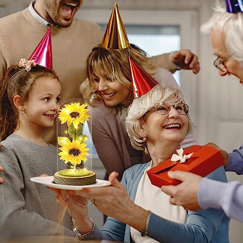 Regali di Girasole per Donna, Girasole Artificiale in Cupola di Vetro, Regali di Girasole Eterni per le Donne per la Festa Della Mamma, Anniversario, Fiore Artificiale Regalo per Donne Mamma Moglie