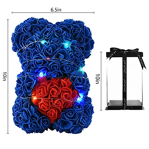 Orso rosa regali per la mamma regali di compleanno per le donne regali fidanzata per la sua rosa orsacchiotto rose artificiali fiori di rosa orso anniversario san valentino matrimonio (Blu Reale)