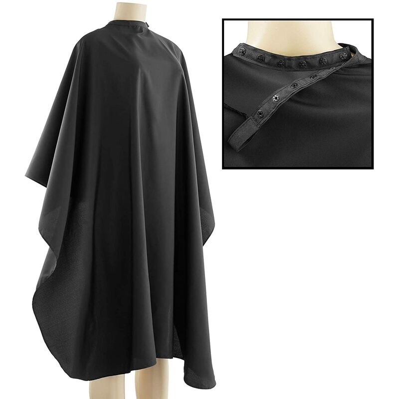 Chiusura a scatto regolabile: Sei chiusure a scatto regolabili per impieghi gravosi intorno alla scollatura per adattarsi alla vestibilità e alla sensazione preferite. Si adatta a diverse dimensioni del collo da 12 a 23. Grado professionale: Realizzato in nylon nero resistente di alta qualità e doppie cuciture. Leggero, traspirante e morbido al tatto offre comfort ai tuoi clienti. Il materiale è resistente sia alle macchie che all'acqua, garantendo una lunga durata. Asole cucite: Due comodi passanti cuciti all'interno della cucitura del collo e all'estremità della chiusura a scatto consentono di appenderlo e riporlo comodamente. Dimensioni universali: Di dimensioni generose, taglia unica che misura 50 x 60 (distesa in piano). Facile da pulire: Pulire con un panno, lavare in lavatrice in acqua calda e asciugare in asciugatrice a bassa temperatura o lavare a secco. Non mescolare con candeggina o altri indumenti. Ideale per l'uso in saloni di bellezza, barbieri, spa, studi e uso