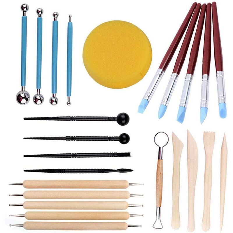Il set di strumenti modellabili in ceramica da 24 pezzi include 5 perni a sfera con manico in legno, 5 stampi colorati, 5 strumenti in legno di argilla, 4 perni a sfera, 4 strumenti in plastica ceramica, 1 spugna in ceramica, in grado di soddisfare diverse esigenze per diversi effetti creativi. Strumenti per punti e penne con punta in gomma. Strumenti di punteggiatura ideali per punti che mescolano cuciture nella creazione di creta, pitture rupestri e fiori di carta. Pennarelli con punta in gomma ideali per dare forma al colore, sfumare, disegnare, piccoli dettagli. Strumenti in ceramica di argilla polimerica in acciaio inossidabile, gomma, legno e plastica, impugnatura piacevole, facile da usare, alta qualità, durevole e di lunga durata vita. La combinazione può utilizzare diverse forme del front-end, quindi gli strumenti di ceramica sono adatti a tutti i tipi di dettagli. Crea dettagli precisi per il tuo progetto artigianale. Una varietà di combinazioni di strumenti appositamente