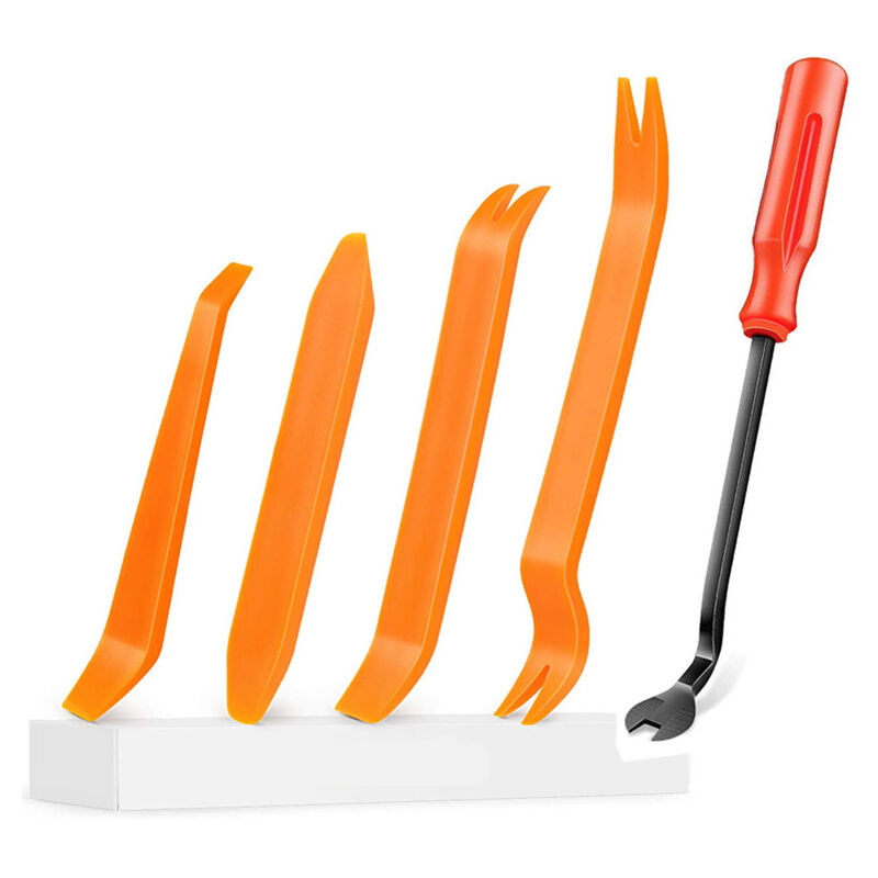STRUMENTI AUTOMATICI PER LA RIMOZIONE DEI RIVESTIMENTI: Il set di attrezzi comprende 5 diverse dimensioni di spudger, adatti per lo smontaggio e il montaggio di parti automobilistiche o nautiche come elementi di fissaggio, pannello porta, pannello carrozzeria, fari, bordo cruscotti, clip, modanature, battiscopa, ecc. . Qualità impeccabile: Lo strumento per la rimozione del rivestimento automobilistico è realizzato con materie prime in nylon di alta qualità, con elevata durezza, resistenza alla flessione, resistenza all'usura, ecc. È molto adatto per lavori di rimozione di elementi di fissaggio interni di automobili professionali. . Facile da usare: Lo strumento per la rimozione di elementi di fissaggio per interni automobilistici è semplice nella costruzione e può essere facilmente utilizzato senza una formazione specialistica. È adatto sia per riparatori professionisti che per principianti. . Design della superficie morbida: Con il suo materiale in nylon di alta qualità, il set di
