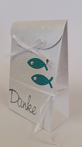 Regalini Per Feste Cristiane Borsa acciaio 8 pezzi CRESIMA comunione 2 pesci turchese grazie "