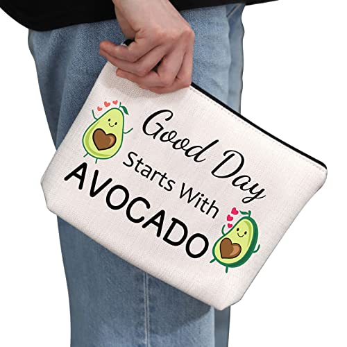 Regalo per amante dell'avocado Buon giorno Inizia con borsa per il trucco di avocado Just A Girl Who Loves Avocados Borsa cosmetica Vegan Vegetariano Regalo Borsa da viaggio con cerniera