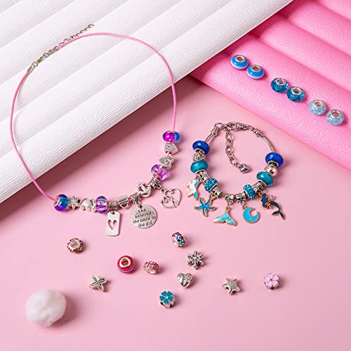 Il kit di braccialetti con unicorno per ragazze include 135 pezzi: 1 scatola regalo con unicorno, 2 piccole scatole per gioielli con unicorno, 6 bracciali, 6 collane, 40 perline di cristallo, 40 ciondoli e 40 ciondoli in metallo.