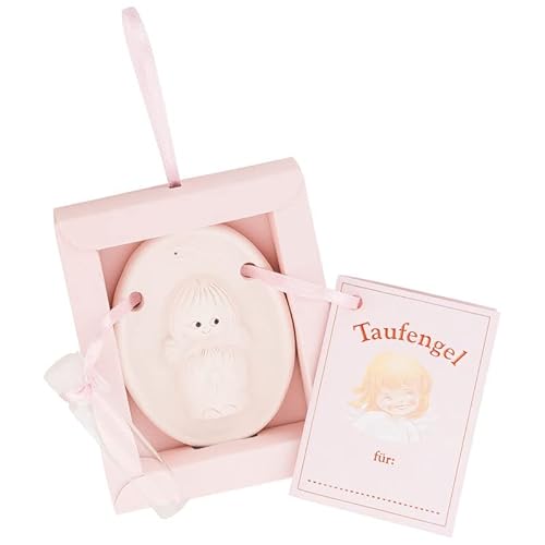 Grazioso angelo custode in argilla, con piccolo biglietto di auguri e contenitore per l'acqua del battesimo da ricordare. Suggerimento speciale: lasciate che il set sia benedetto dal pastore dopo il battesimo.