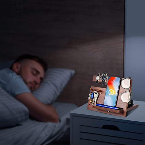 Regalo Uomo Compleanno Docking Station Legno per Cellulare Portafoglio Orologio Regalo Donna Marito Fidanzato Mamma Moglie Regalo Organizer Uomo Supporto da Comodino Anniversario Regalo Natale Uomo