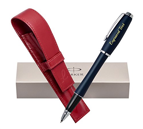 Idee regalo di compleanno per marito Parker Rollerball Pen Urban - cielo notturno Blue CT + Leather Pouch Red + Box
