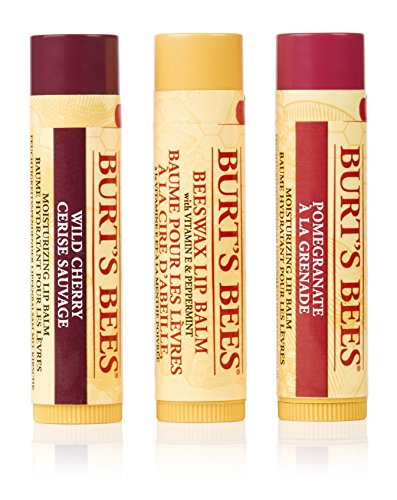 Include balsamo per le labbra alla cera d'api da 4,25 g con vitamina E e menta piperita, balsamo per le labbra al melograno da 4,25 g e balsamo per le labbra alla ciliegia selvatica da 4,25 g.