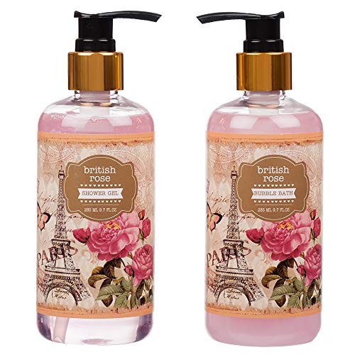 Set regalo per il corpo e la vasca da bagno con rose britanniche, 9 pezzi, include tutti gli elementi essenziali per il bagno, completo di cesto grande e un fiocco.
