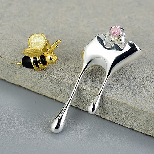 ♥ Design unico ♥ "Design ape e miele gocciolante, orecchini asimmetrici", indossare questi orecchini donna fatti a mano in argento S925 unici rende le donne con un temperamento unico ed elegante.