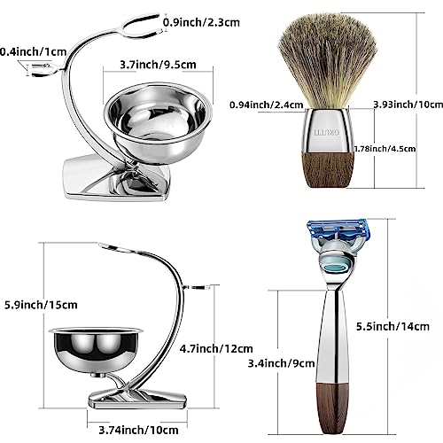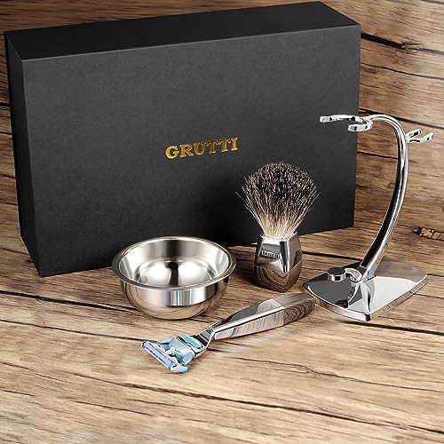 Set regalo per uomo GRUTTI Razor, kit per rasoio manuale con supporto resistente e ciotola per sapone e pennello da barba e rasoio in tasso compatibile con Fusion 5