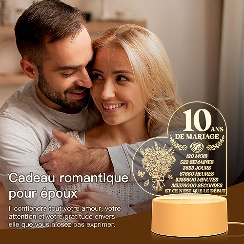 Regalo di matrimonio, luce notturna in acrilico, regalo di matrimonio, regalo di 10 anni di matrimonio, stagno, regalo di compleanno di matrimonio, 10 anni di matrimonio, regalo 10 anni di matrimonio