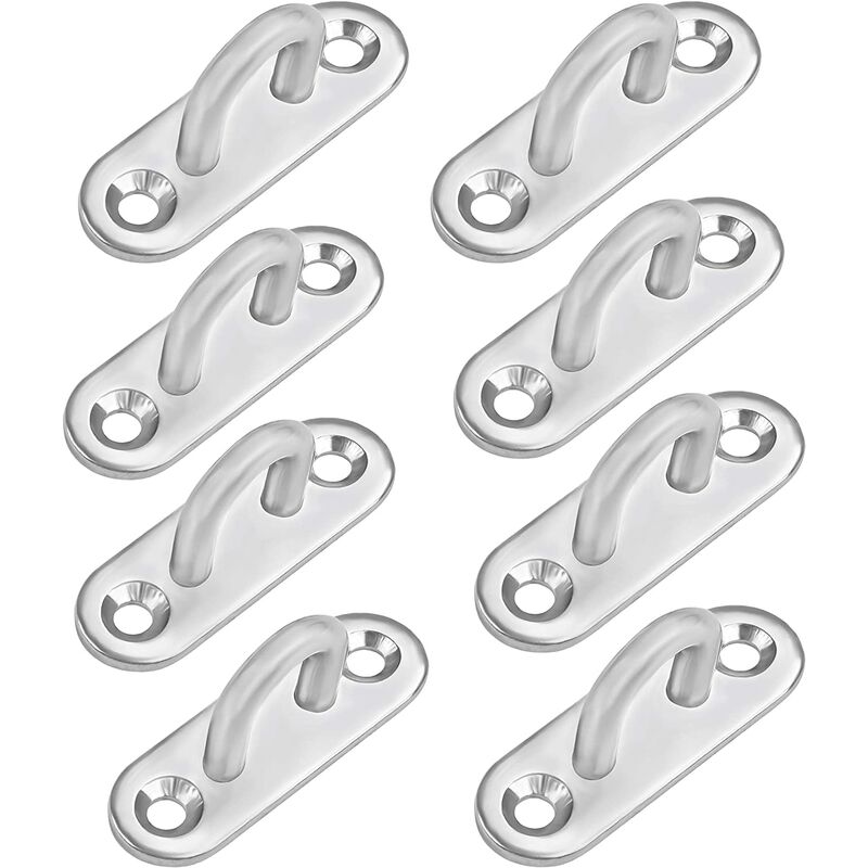CONFEZIONE DA 8: Questo set è composto da 8 piastre di fissaggio M5 con occhiello in metallo. Misurano tutti L50 x L17 mm. I fori sono distanziati di 15 mm e i 2 fori per le viti a testa svasata hanno un diametro di 4,5 mm. FACILE MONTAGGIO: I nostri ganci di fissaggio sono molto facili da installare. Basta perforare la parete, il soffitto o la porta, inserire un tassello e avvitare queste piastre. Con 8 piatti oblunghi nel nostro set, avrai abbastanza per completare molti progetti fai-da-te. ACCIAIO INOX 304: Ogni gancio da parete è realizzato in acciaio inossidabile 304 di alta qualità con una finitura lucida. Resisteranno quindi perfettamente alla corrosione e sono adatti per uso interno o esterno. I ganci sono saldamente saldati alle piastre e hanno una portata di 40 kg. TANTI USI: Queste piastre passacavo sono perfette per appendere piante e reti, amache, altalene, elastici, sacchi da boxe, corde, vasi di fiori, lampade, cavi e stendibiancheria. Possono anche essere usati come