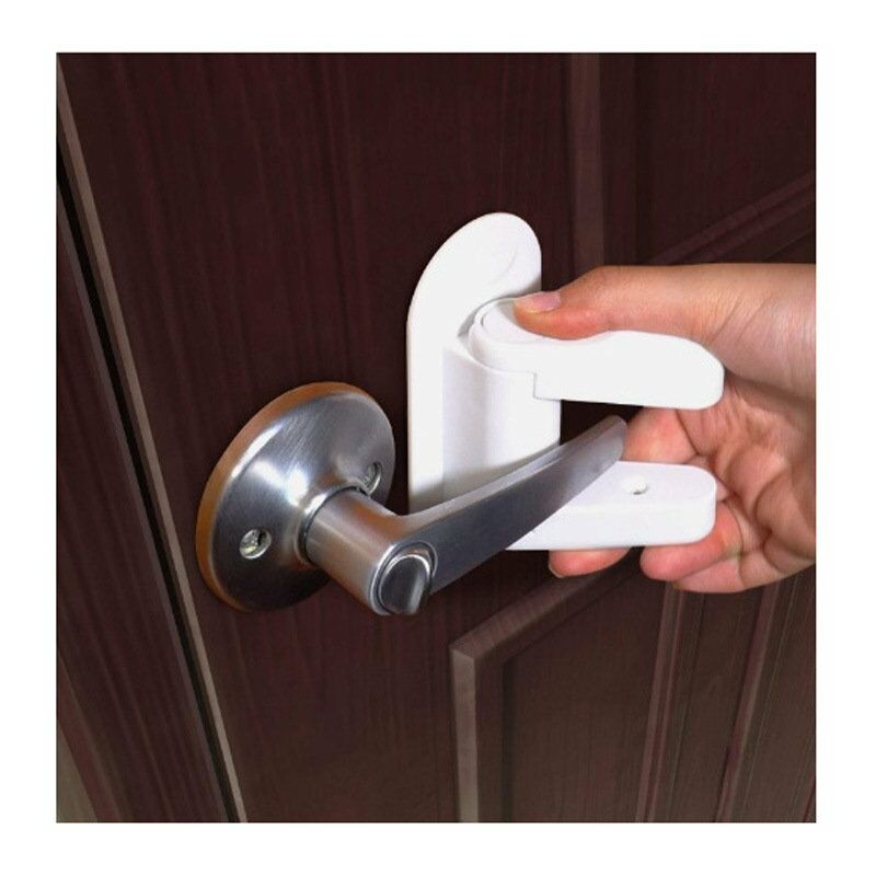 Blocco di sicurezza per bambini JOLIK Blocco porta La maggior parte dei bambini non può aprire! Altre serrature di sicurezza per bambini possono essere aperte da bambini piccoli. Non forniscono la sicurezza di cui hai bisogno. La nostra serratura richiede che un adulto prema i pulsanti su un lato della serratura FACILE FUNZIONAMENTO - Sia gli uomini che le donne possono facilmente aprire e chiudere la porta di sicurezza per bambini con una mano. Puoi aprire questo lucchetto con solo 2 dita. Basta premere il pulsante di sblocco per disattivare un lato. Premendo il pulsante a 2 lati per passare alla modalità off, ti impedisce di essere bloccato fuori dai tuoi bambini. FACILE DA INSTALLARE - Non sono necessari strumenti. Non c'è bisogno di praticare fori. Attacca semplicemente alla tua porta con il supporto adesivo 3M incluso. Per rimuovere il blocco del bambino, utilizzare un asciugacapelli per riscaldare l'adesivo 3M e rimuoverlo facilmente. Nessun danno o segno lasciato sulla porta.